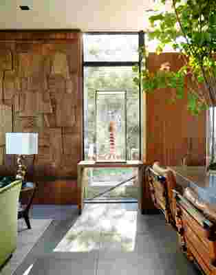 “Even more important than providing places for our art and furnishings, we wanted our house to be very hardy and functional,” says Vaccari. Durable indoor-outdoor surfaces and an open floor plan both became paramount. The result? A full-time residence with the spirit of a vacation home, where family time and entertaining often become one and the same—and where the motto is fun, never fussy. “Who thought a contemporary home could become a neighborhood playground?” says Vaccari, proving that durability doesn’t, in fact, need to compromise good design.
